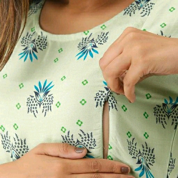 Jivika Attractive Maternity and feeding Kurtis Fabric: Rayon Sleeve Length: Three-Quarter Sleeves Combo of: Single "Sizes: S (Bust Size - 36 in , Length Size - 52) M (Bust Size - 38 in , Length Size - 52) L (Bust Size - 40 in , Length Size - 52) XL (Bust Size - 42 in , Length Size - 52) XXL (Bust Size - 44 in , Length Size - 52) XXXL (Bust Size - 46 in , Length Size - 52)" Fit Shape : Maternity Kurtis Dispatch: 1 Day