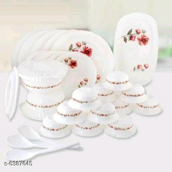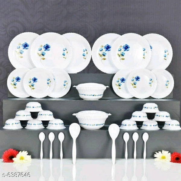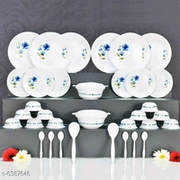 Classic Plates Material: Plastic Pack: Pack of 1 length: 8 Inch Size : Free Size Package Contains: It Has Full Plate - 06, Half Plate - 06, Veg Bowl -12, Serving Bowl - 02, Serving Spoon-02, Serving Bowl Lid - 02, Spoon - 06 Dispatch: 1 Day