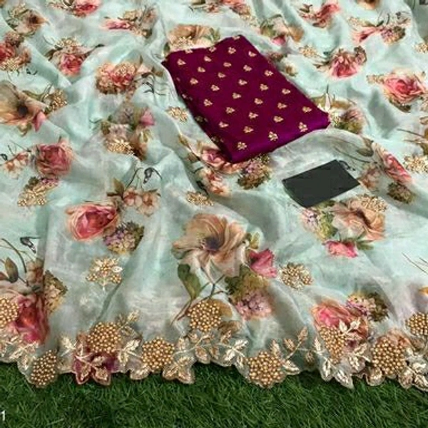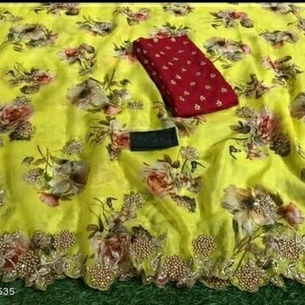 Myra Sensational Sarees Saree Fabric: Organza Blouse: Separate Blouse Piece Blouse Fabric: Organza Multipack: Single Sizes: Free Size (Saree Length Size: 5.5 m, Blouse Length Size: 0.9 m) Dispatch: 2-3 Days