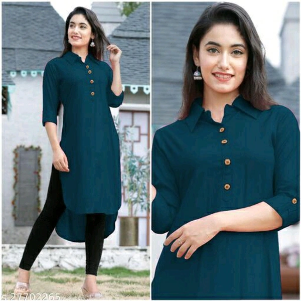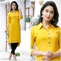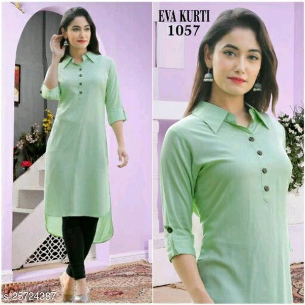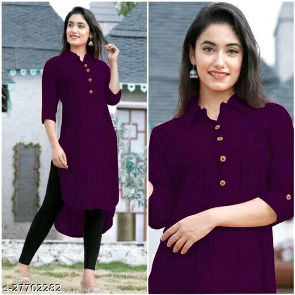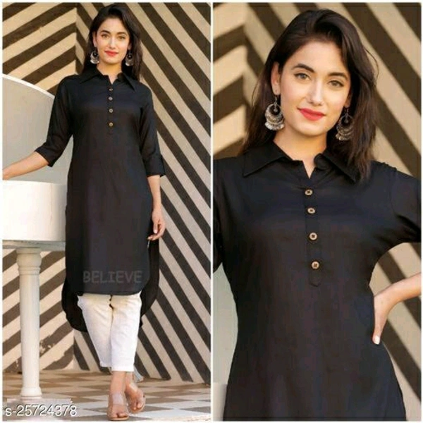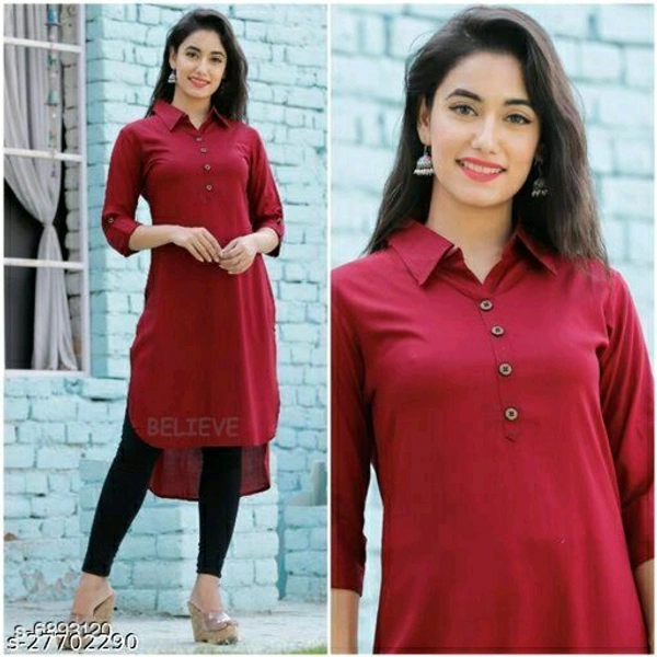 Banita Pretty Kurtis Fabric: Rayon Sleeve Length: Three-Quarter Sleeves Pattern: Solid Combo of: Single Sizes: S (Bust Size: 36 in) XL (Bust Size: 42 in) L (Bust Size: 40 in) M (Bust Size: 38 in) XXL (Bust Size: 44 in)