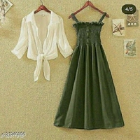 Pretty Fashionable Women Dresses Fabric: Crepe Sleeve Length: Sleeveless Pattern: Solid Multipack: 1 Sizes: S (Bust Size: 34 in, Length Size: 40 in) XL (Bust Size: 40 in, Length Size: 40 in) L (Bust Size: 38 in, Length Size: 40 in) XXL (Bust Size: 42 in, Length Size: 40 in) M (Bust Size: 36 in, Length Size: 40 in) Dispatch: 2-3 Days