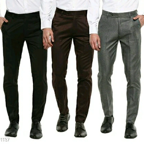 Fancy Fashionista Men Trousers Fabric: Polyester Pattern: Solid Multipack: 3 Sizes: 34 (Waist Size: 34 in, Length Size: 41 in) 36 (Waist Size: 36 in, Length Size: 41 in) 38 (Waist Size: 38 in, Length Size: 41 in) 28 (Waist Size: 28 in, Length Size: 41 in) 40 (Waist Size: 40 in, Length Size: 41 in) 30 (Waist Size: 30 in, Length Size: 41 in) 32 (Waist Size: 32 in, Length Size: 41 in) Dispatch: 2-3 Days