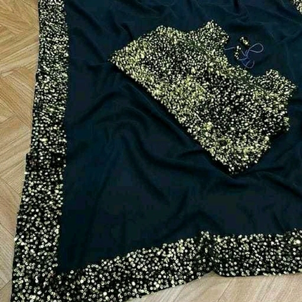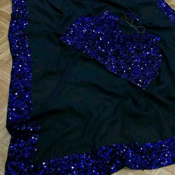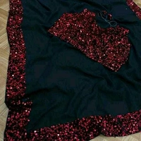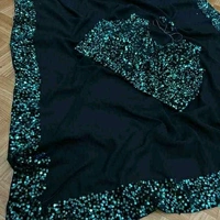 Aagyeyi Fashionable Sarees Saree Fabric: Georgette Blouse: Stitched Blouse Blouse Fabric: Velvet Pattern: Dyed/ Washed Blouse Pattern: Embroidered Multipack: Single Sizes: Free Size (Saree Length Size: 5.5 m) Dispatch: 2-3 Days