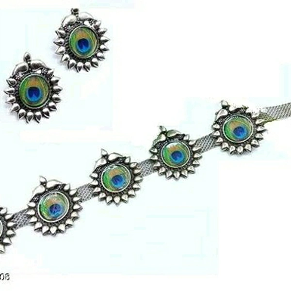 pecock necklace Feminine Unique Jewellery Sets Base Metal: Alloy Plating: Oxidised Silver Stone Type: Artificial Stones & Beads Sizing: Adjustable Type: Necklace and Earrings Multipack: 1 Dispatch: 1 Day