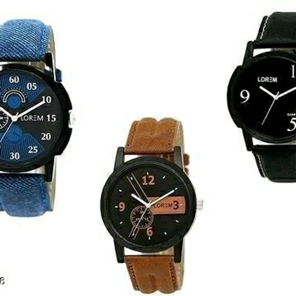 Classy Men Watches Strap Material: Leather / Metal Display Type: Analogue Sizes:Free Size Multipack: 3 Dispatch: 2-3 Days