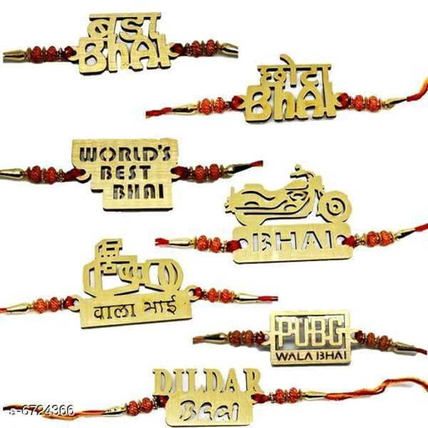 Shimmering Fusion Rakhi Material: Wood MDF Type: Rakhi Multipack: 7 Sizes: Free Size Dispatch: 2-3 Days