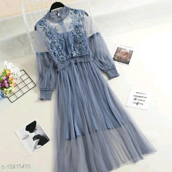 Women's Net Dresses Fabric: Net Sleeve Length: Long Sleeves Pattern: Lace Multipack: 1 Sizes: S (Bust Size: 34 in, Length Size: 48 in) L (Bust Size: 38 in, Length Size: 50 in) M (Bust Size: 36 in, Length Size: 49 in) Dispatch: 2-3 Days